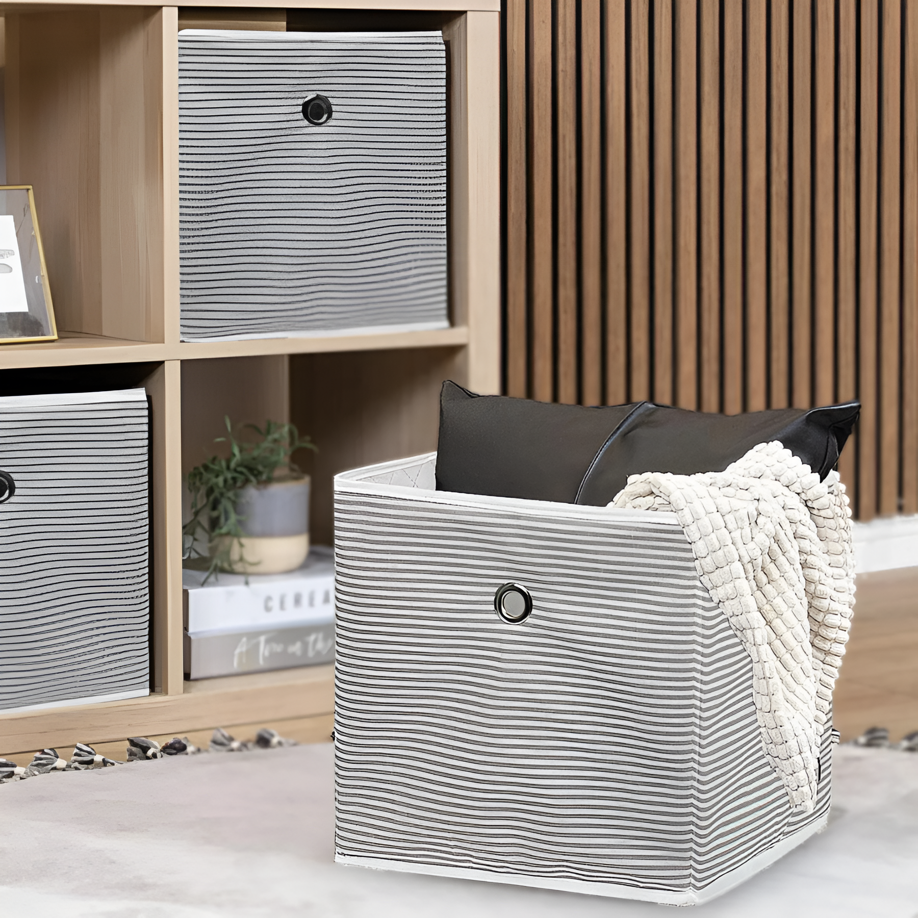 علبة تنظيم الرفوف بخطوط رمادية تجمع بين التصميم العصري والوظيفة العملية لتمنح منزلك مظهرًا مرتبًا وجذابًا.