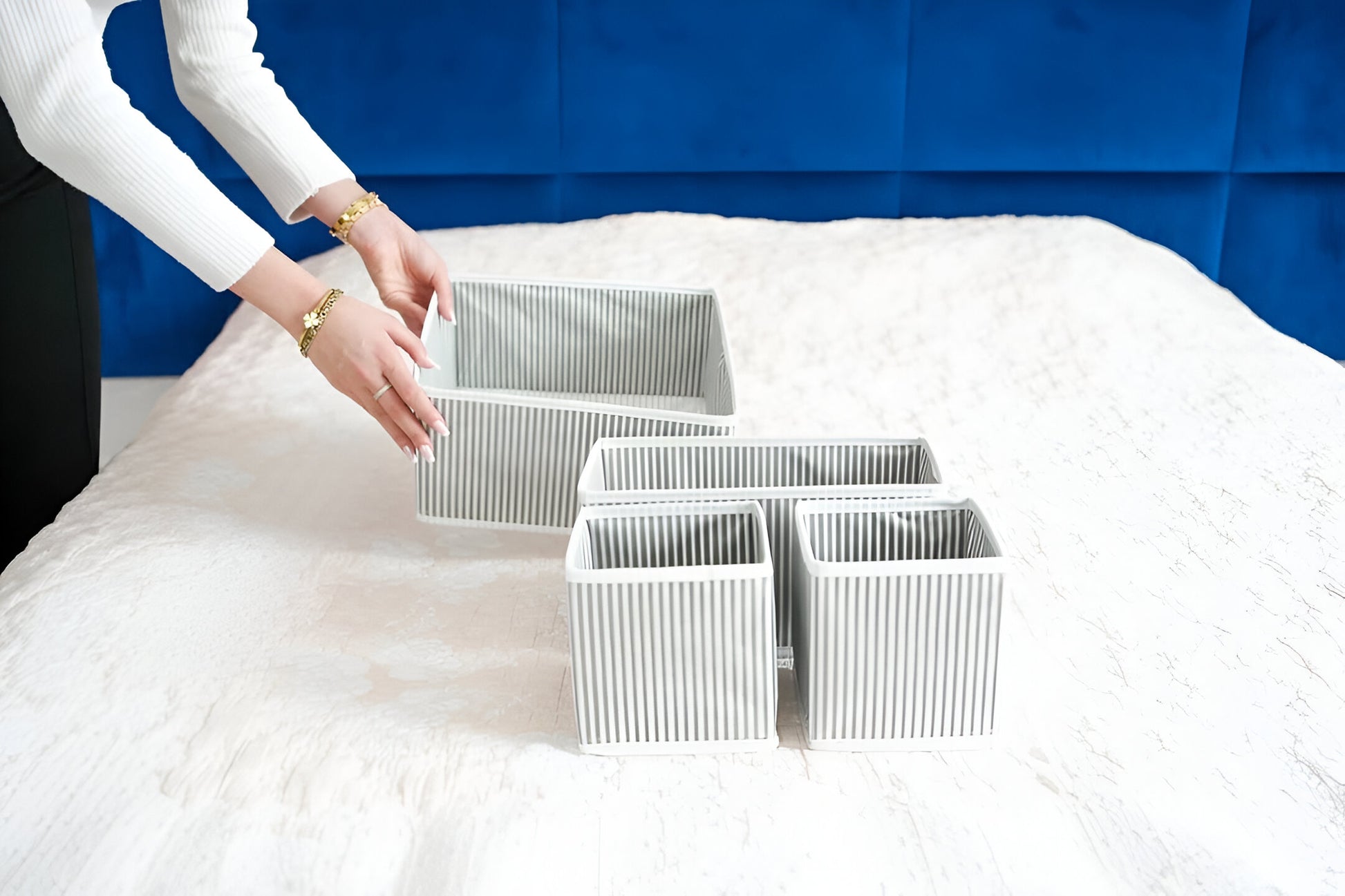 نظّم ملابسك الداخلية، الجوارب، وربطات العنق بسهولة مع صناديق التخزين القماشية العملية. تصميم متين وخفيف، يوفر لك المساحة ويحافظ على أغراضك مرتبة وأنيقة في كل وقت